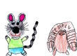 Er stellt euch nun unsere Flugelite Nr. 7 vor. Befähigt durch die sehr selten angeborenen Flughäute rechts und links, dienen sie durch ihre Schnelligkeit zur Sicherheit aller. Die Muselmannmäuse mit den Zwei Schwänzen dagegen, das ist das Bild Nr. 9, diese regeln den gesamten Flugverkehr. |
